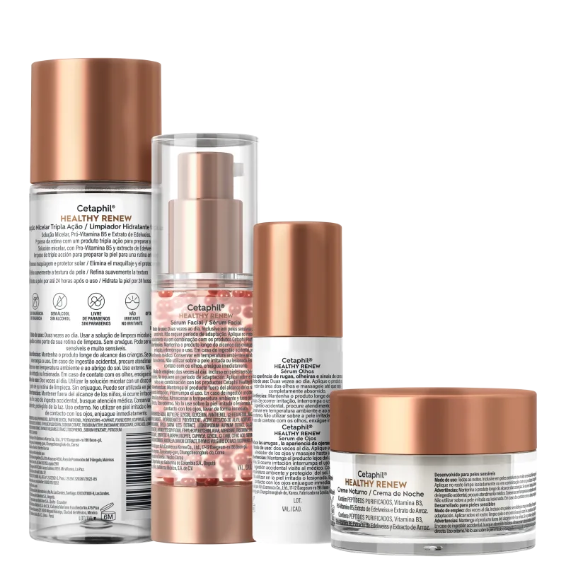 Kit de tratamento para todos os tipos de pele. Cetaphil Healthy Renew proporciona pele rejuvenescida e com aparência mais saudável.